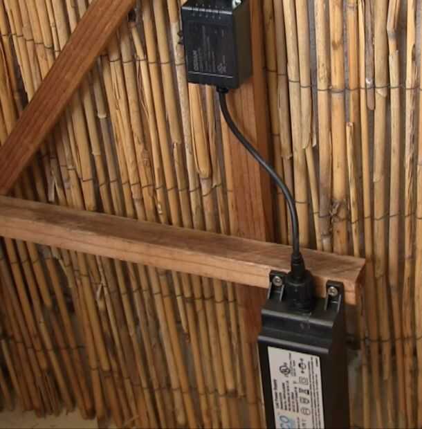 Primero os adjunto la fuente de alimentación y el controlador a la rejilla en la pared de mi balcón. Usted querrá enchufe en una toma al aire libre con protección GFCI (interruptor diferencial).