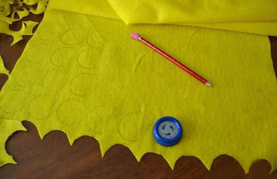 Poner una tapa de la botella en el fieltro; dibujar un montón de patrones de círculo.