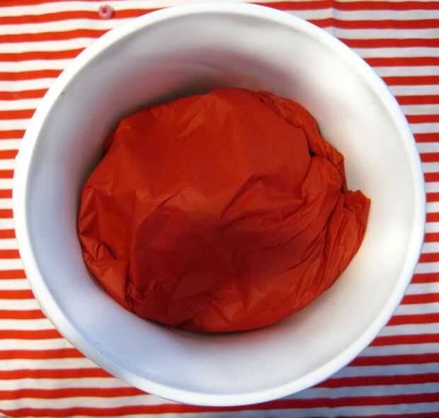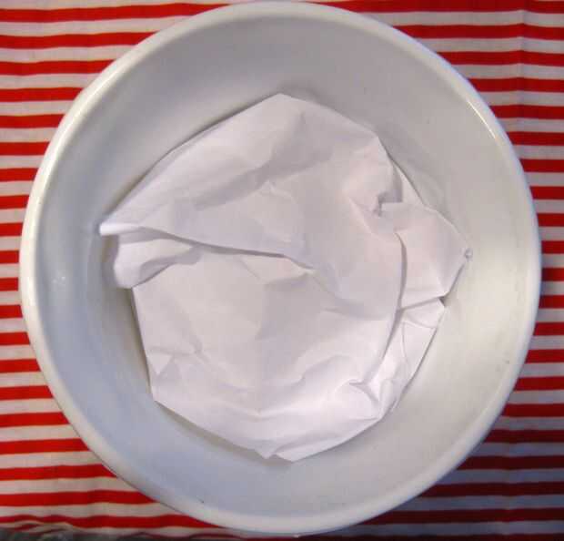 Para hacer el tazón de fuente aspecto más completo de lo que realmente es, primero tienes que rellenar con toalla de papel. Después de que tome un pedazo de papel y envuelva alrededor de la toalla de papel, así que hay más estructura a él. Está tratando de hacer una base para que cuando pones los granos en no caigan en pequeñas grietas.