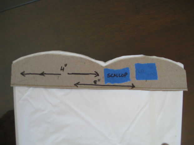 Este paso podría repetirse en la parte inferior de la capa, en cuyo caso la capa inferior debe ser más larga que la capa superior. En este Instructable, la capa inferior fue recortada a 83 1/2 pulgadas (no quitar más de la mitad una pulgada cortando las vieiras). La capa superior se redujo a 81 1/2 pulgadas. La mesa en que fue utilizado era 72 pulgadas de redondo.