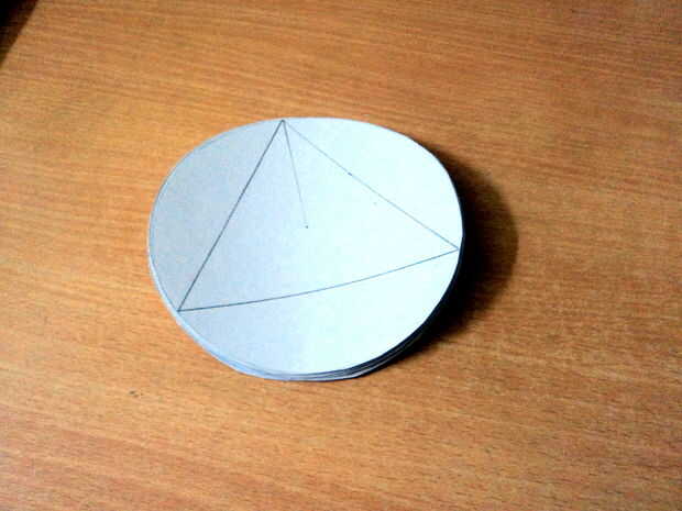 En este paso usted necesita hacer un triángulo equilátero sobre cada uno de los círculos de placas que debe ser inscrito en él.