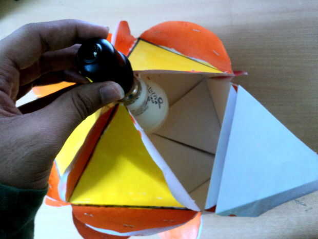 Para configurar el sistema de iluminación en la bola tome un portalámparas de luz entonces Inserte una bombilla de iluminación y poner el titular en la bola de la apertura y cierre esa última apertura con pegamento o grapadora.