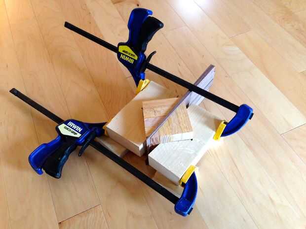 Sujete la cola-para arriba o use cinta para sostener el conjunto (hoja-cubo) juntos mientras el pegamento seca. De sujeción puede ser un poco complicado, ya que las cuñas tienden a escurrir cuando aumentas la presión de sujeción; sin embargo, la sujeción proporcionará una mejor articulación de pegamento.