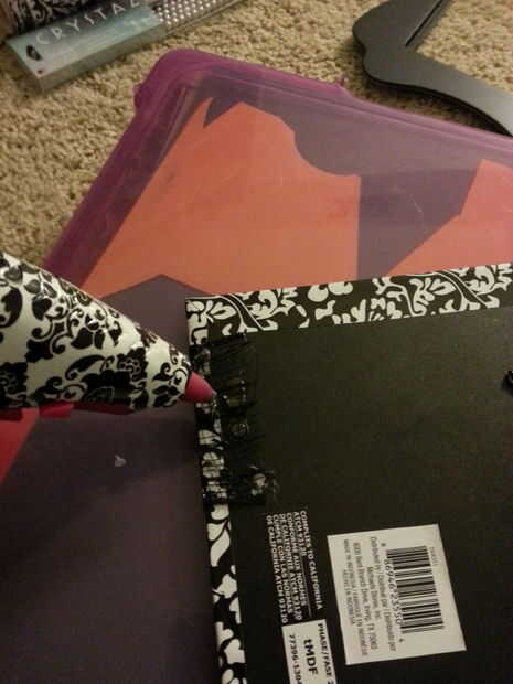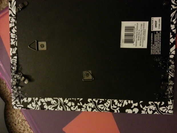 Usando la pistola de pegamento caliente, encolado a un lado en la parte posterior del marco y Envuélvala alrededor de la parte delantera. No use pegamento en la parte frontal del marco. Sólo Pegue ambos bordes en la parte posterior del marco.