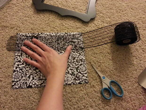 Medir el espesor del cordón y colóquelo usted como en su armazón. Debe tener aproximadamente 1" extra a cada lado para envolver alrededor de la parte posterior. Opté por colocar dos tiras horizontalmente a través, de uno en la parte superior y uno en la parte inferior. Usted podría también colocarlos verticalmente si quieres.