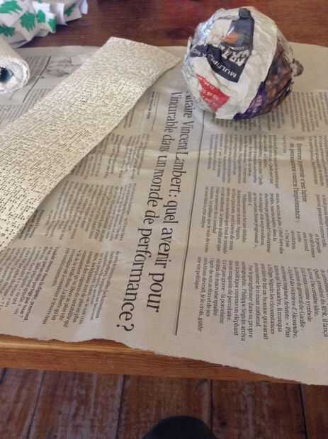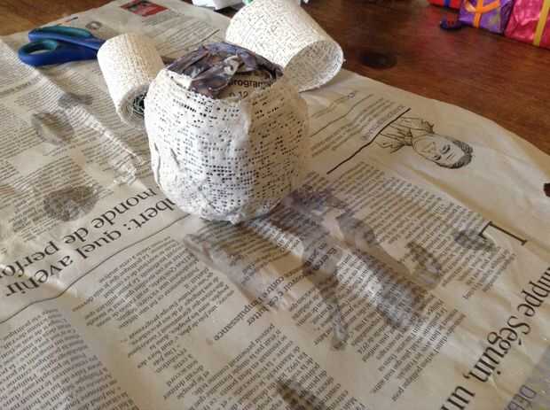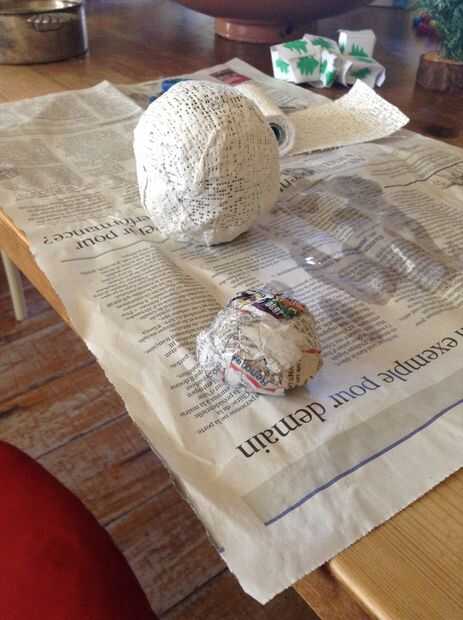 Corta tiras de yeso, humedecerlas en agua y colocarlas en la bola para conseguir la mejor forma posible.