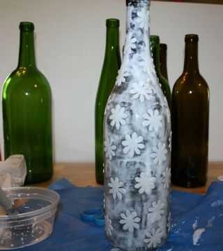 Puede pegar el corte común de tarjeta salidas sobre la botella de dos maneras, o bien agregar el pegamento a la corte y coloque en la botella o la tapa toda la botella con pegamento y coloque firmemente los recortes en la botella. De cualquier manera funciona. Una vez que han cubierto la botella con los recortes, extraer la burbuja todos y asegúrese de que la cartulina se adhiera a la botella. Por último, cepillar la botella entera con una mezcla de pegamento y agua que selle completamente y deje secar por una hora o hasta que seque completamente al aire.