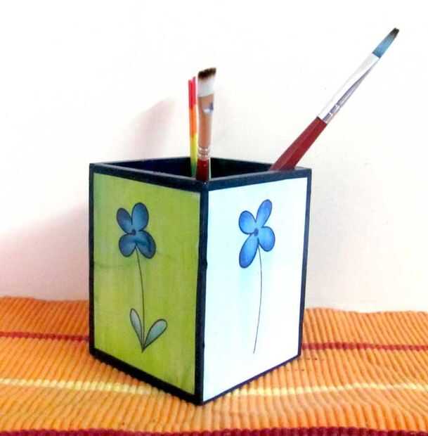 Decoupage es el arte de decorar un objeto de papel encolado. Corte de papel de colores son pegados sobre objetos y luego recubierta con pegamento de Decoupage. Después de 10-15 capas ves el "pegado en" apariencia desaparece y el resultado se parece a pintura o trabajo de incrustación.