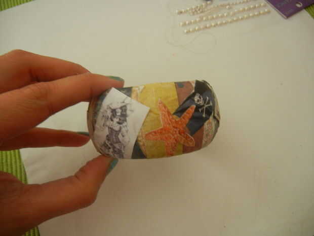 artesanos de Hi,Esto es un breve tutorial sobre cómo decoupage (envoltura de papel) un brazalete de madera sin terminar. Los materiales que necesitarás son: un brazalete de madera inacabado, papel, pincel, modge podge o un sellante. Para obtener más