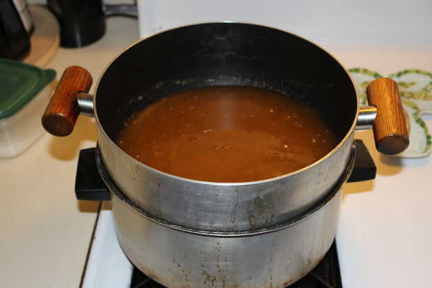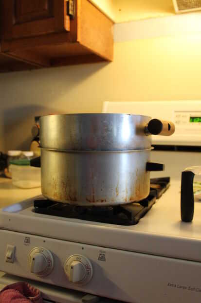 Poner aproximadamente una pulgada de agua en la parte inferior de la caldera de doble y encender la calefacción.