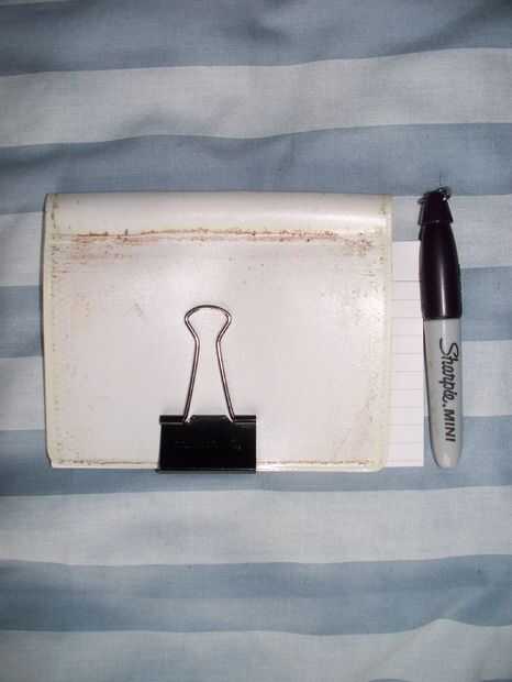 2. sacar el lápiz pequeño. Usaba una Mini Sharpie en ciruela, no ideal pero crecía en mí. Deslícelo en la ranura (no risillas en la parte posterior existen) y comprueba el efecto. La pluma debe ahora ser accesible con la tapa abierta o cerrada.