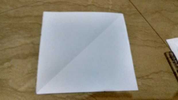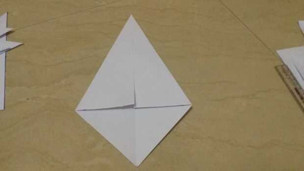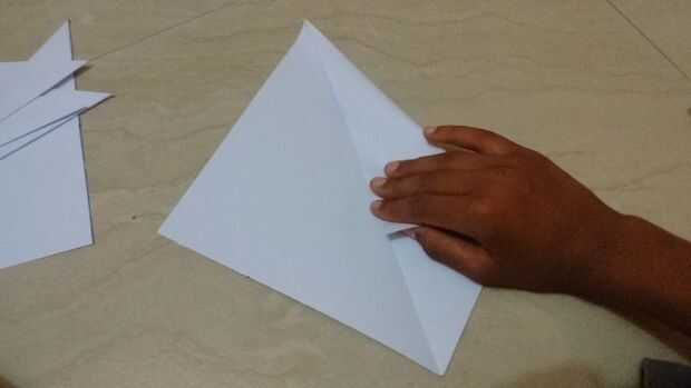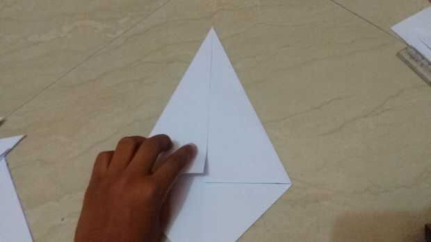 1. después de cortar el papel blanco. Retire el papel y dobla el papel como forma del triángulo como se muestra en la imagen.