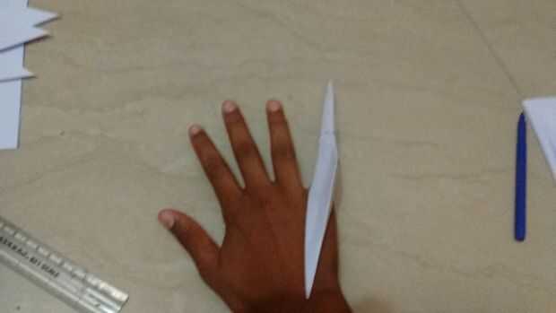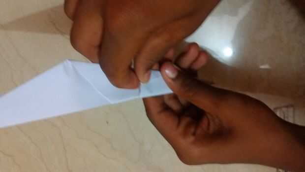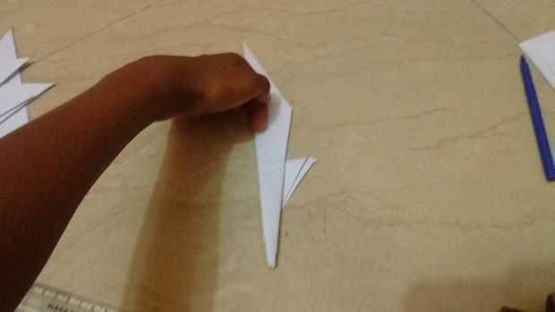 1. después de doblar el papel hasta el final. Participar ese fin puso en el agujero en el dedo como se muestra en la imagen.
