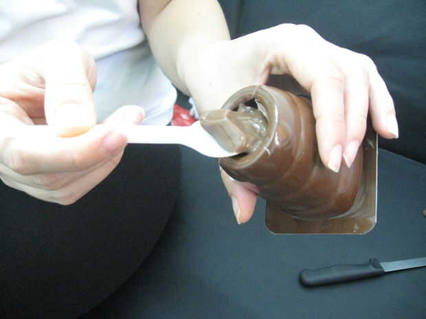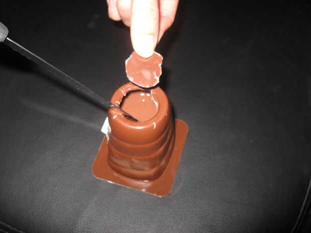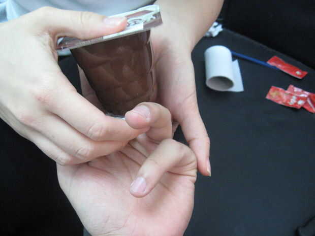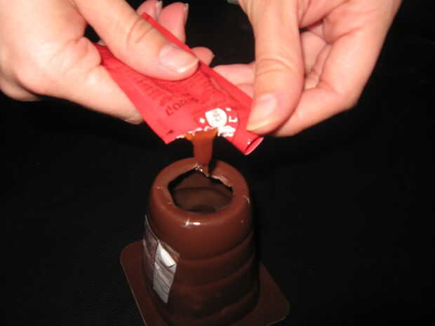 7 Introduzca el dedo en el paquete de pudín.