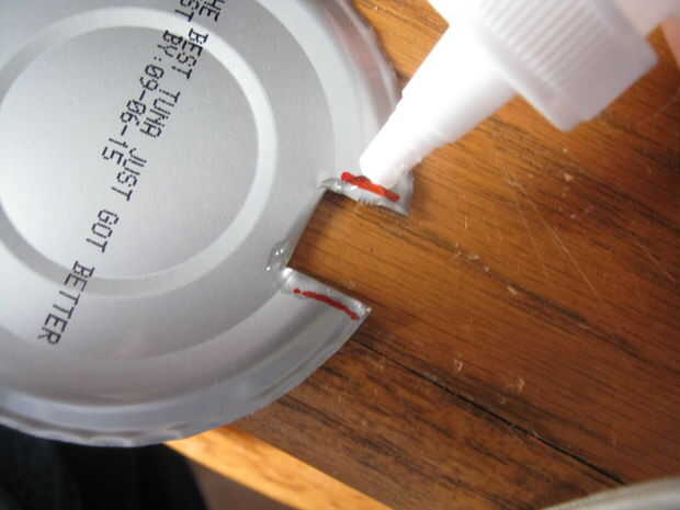 Tomar su pegamento y aplicar en el interior de su corte.  Esto es muy importante porque es lo que impide que la mano se corte abierto, así que aplicar liberalmente y deje que se seque.