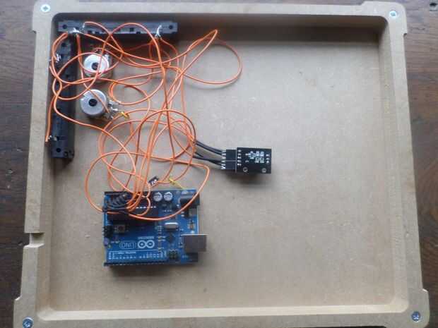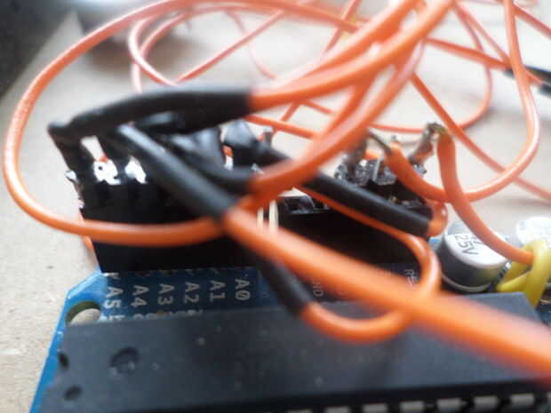 Arduino Playground tiene toda la información necesaria sobre la conexión de los potenciómetros o un encoder rotatorio. Mina era un componente por lo que no utilizo cualquier resistencias adicionales. Todos construcción... fácil.