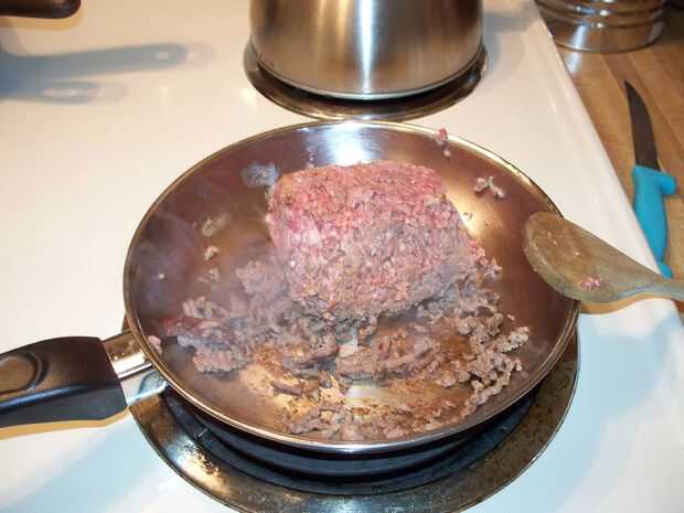 ingredientes:1 bolsa de Doritos 1 bolsa de condimento para tacos1 bolsa de queso mexicano 1 botella de aderezo Catalina1 cabeza de lechuga 1 libra de hamburguesa3/4 de taza de aguaPaso 1: Burger:1. Coloque 1 libras de hamburguesas en una sartén y coc