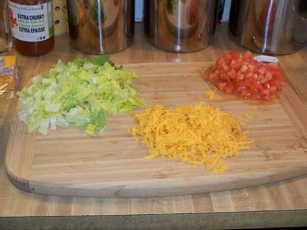 Une salade Taco fácil un faire et dangereusement délicieuse!Ingredientes:-Tête de saladeRouge - Oignon-Cheddar de Formage de bloc-Rouge piments-2 libras de bœuf hacher-Paquet mélange pour TacoCésar - Trempette-Croustille Tostitos ou DoritosPaso 1: Le