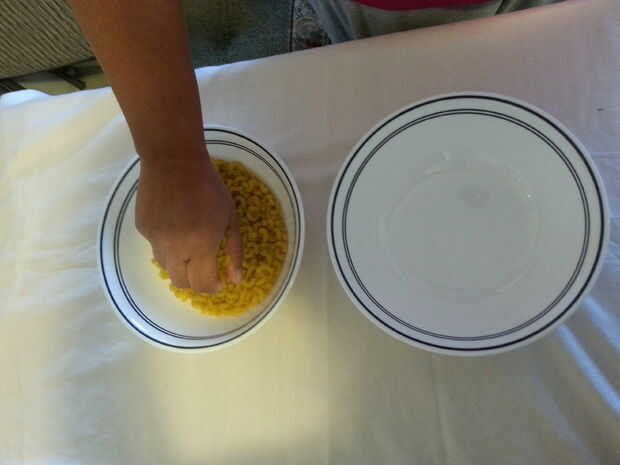 Vuelta palma de la mano de ___ abajo. Coge un puñado de pasta seca