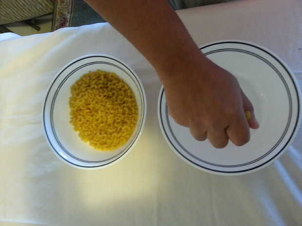 Palma vuelta de ___ abajo. Mano abierta. Soltar pasta en contenedor vacío