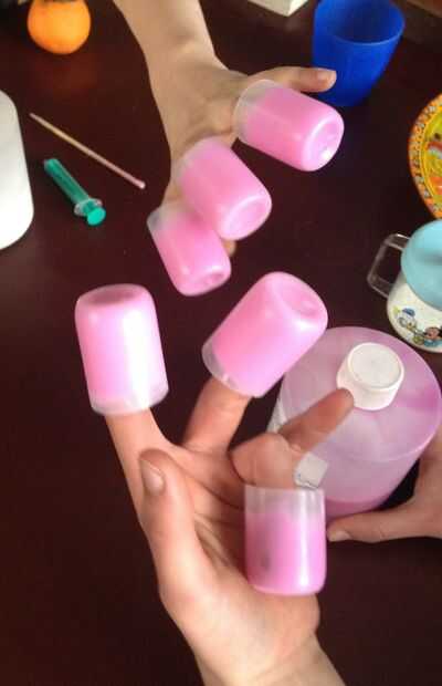 Una vez que el silicio se encuentra, no es difícil conseguir los dedos más difícil de conseguir los moldes de las formas. Hacer un agujero en la parte inferior de las formas, así que puede conseguir aire en como usted palanca/culebrea exprime hacia fuera.