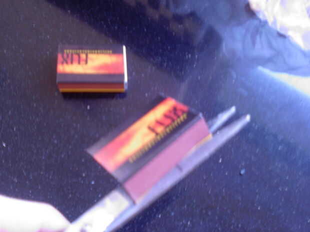 Paso uno: cortar una superficie llamativa de la caja de fósforos.