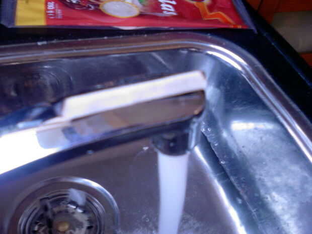 Paso 3: poner la pieza doblada de caja de cerillas sobre una superficie fría, como un grifo de agua mientras fluye el agua fría. La superficie fría del grifo causará condensación del humo creado en el paso siguiente.