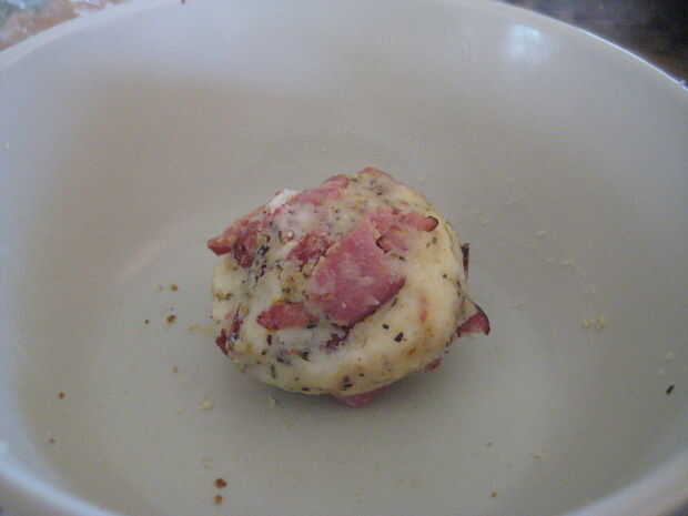 5. Coloque la bola de queso en el centro de la empanada de pollo.