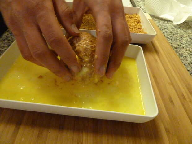 Coger en el lavado de huevo y cubra uniformemente en el huevo.