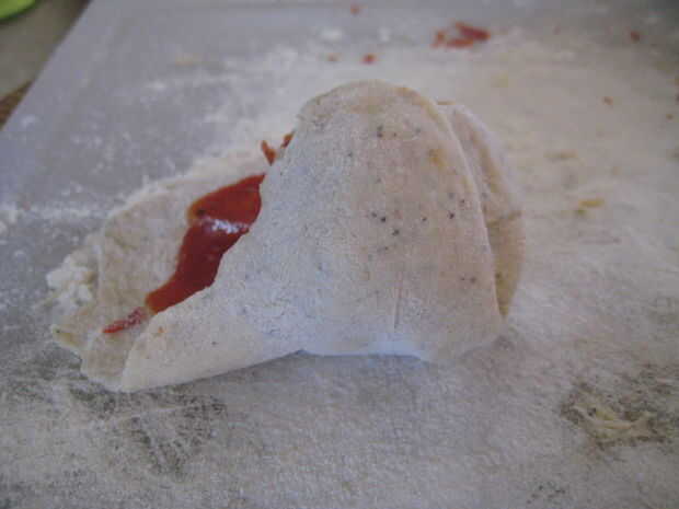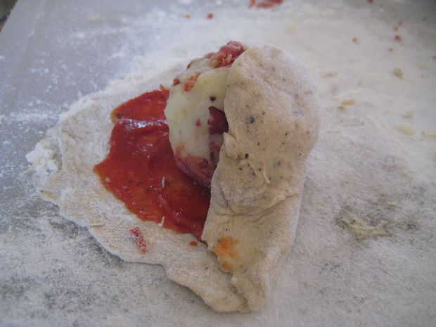 unsauced la masa alrededor del borde exterior así que usted será capaz de sellar la bola sin ningún lío.