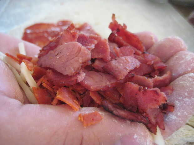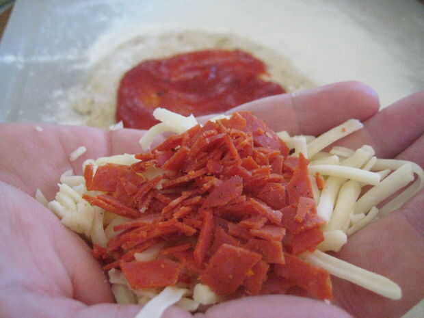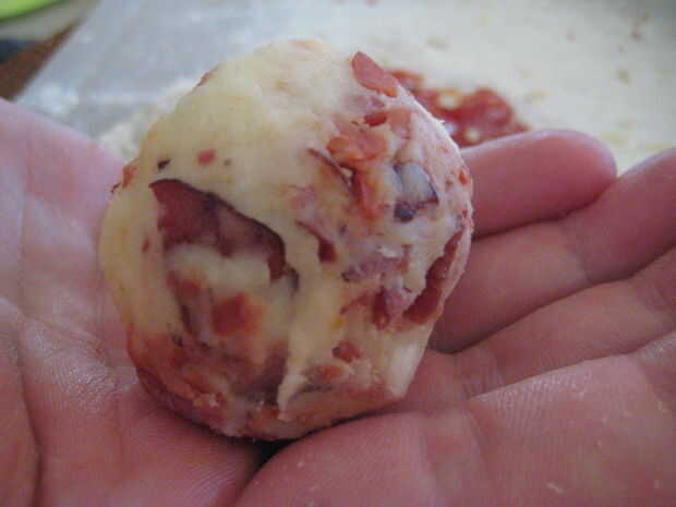 2 cucharadas de pepperoni, luego formar una bola.