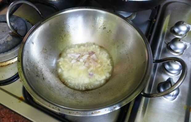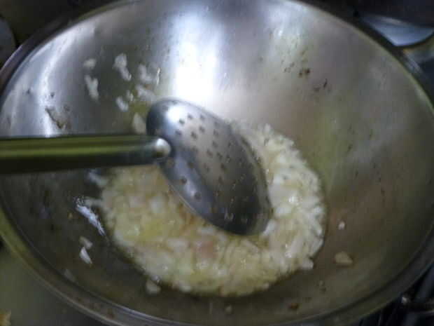 • Poner la cebolla (cortada pedazos pequeños) en el aceite y freír durante algún tiempo.