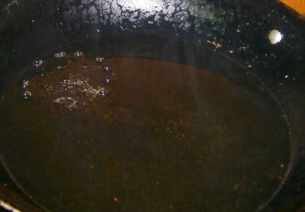 Mantener la llama en alto y calentar el aceite hasta que aparezcan burbujas.