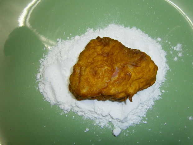Coloque la sandía frita sobre el azúcar en polvo. Cubrir ambos lados.