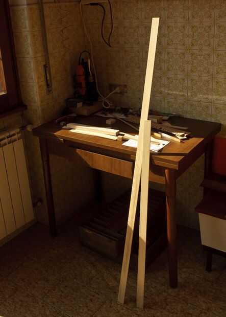 En primer lugar tuve que elegir los perfiles de madera. Busqué un piso bar, largo 1 metro para el guardabarros delantero y 1,5 m para uno posterior. Sobre el tipo de madera no soy un experto, pero presté atención que no había nudos, y que las fibras eran finos y obviamente paralelo a la longitud. El grueso de la barra tiene que no ser más de 1/4" o menos mejor.