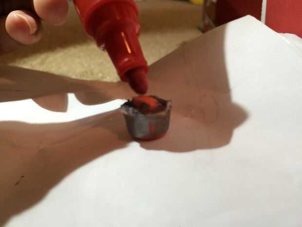 Para el ojo biónico, todo lo que necesitas hacer es cortar el extremo de la bala de Nerf. Habrá una presión en el medio que necesita cortar para que sea más corto. Una vez que lo hace, usted necesita los lados plata y el círculo de color rojo. Consulte las fotos de arriba si esto no tiene sentido.