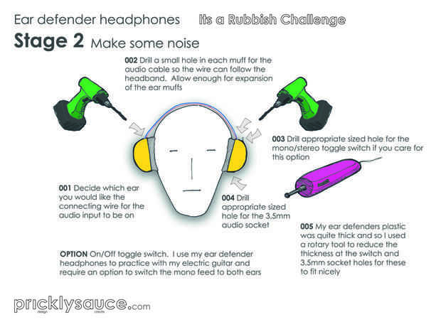 Taladro un apropiado tamaño de agujero para el cable a cada altavoz en las orejeras en algún lugar cerca del punto de pivote de la venda.