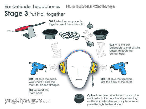 Añadir un punto de pegamento caliente a donde el cable sale de las orejeras para evitar que el cable se tira.