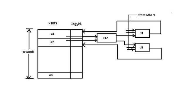 3. el circuito combinacional Di agrega el número total de 1 de entrar en ella y da una salida correspondiente a él. Esta salida puede tener un valor máximo de n. Así esta salida necesita una representación binaria de log2n bits como se mencionó anteriormente.