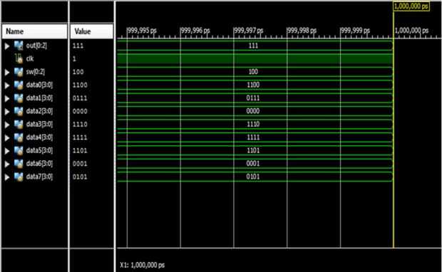 Presentado aquí, es la simulación de la máquina de clasificación toda diseñada para implementar el algoritmo. Puede verse que el RTL esquemático muestra las etapas de comparación seguidas de las calculadoras de rango seguido por el MUX para seleccionar el rango a mostrar. El módulo principal, en cada nivel de la entrada de reloj, lleva en 8 entradas y los almacena en la memoria. Entonces, el rango de cada elemento de datos es computado y alimenta a los campos de fila en la memoria utilizada. La herramienta utilizada para simular el modelo de comportamiento del circuito fue isimos con Xilinx ISE 13.2.