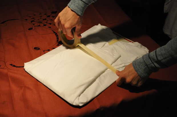Usé cinta adhesiva para ello. Uno, porque fácil de quitar. Dos, que hace más fácil si estropear en el siguiente paso para empezar. Tres, puedo quiero usar la galería de símbolos caso otra vez mi falta de amigos uno.