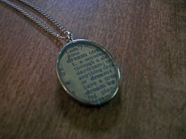 Gracias a las maravillas de biseles, mod podge y modge podge magia dimensional, puede crear fácilmente un colgante personalizado en una noche. He hecho un puñado de collares de diccionario (no fotografiada) antes, y planeo hacer colgantes con mapas tan pronto como llego a mis manos en unos biseles más. Super adictivo y super exclusiva!
