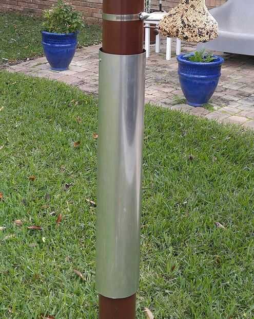 he tenido crecientes problemas con ardillas subiendo el polo a mi comedero y comer el alpiste. Quería encontrar un bajo mantenimiento y fácil de instalar, solución permanente. Los desviadores tradicionales que parecen un semicírculo no siempre funcio