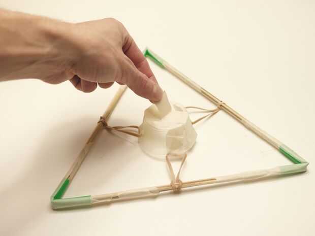 Use cinta para fijar la goma a los lados de una taza. Puedes hacer dos capas de cinta adhesiva para evitar que la cinta de extracción durante el uso.
