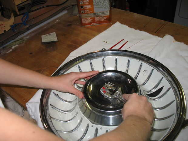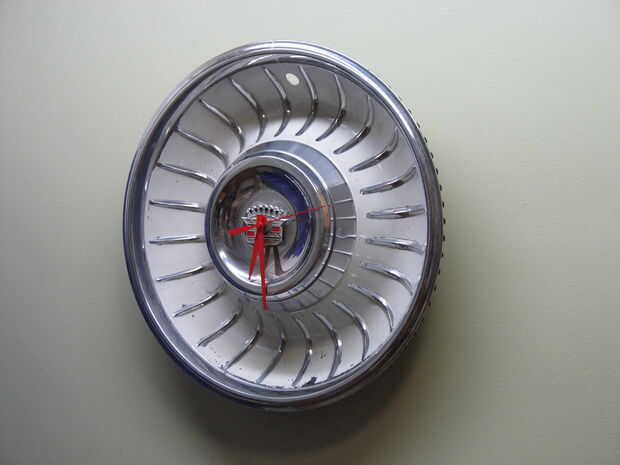 Con todo el trabajo de preparación realizado, todo lo que quedaba para hacer era configurar el kit de reloj. Coloqué el motor detrás de la tapa del cubo con el vástago a través del orificio taladrado y el emblema. Con cuidado aseguró el motor reloj del casquillo de eje con la tuerca suministrada. A continuación, tomó las manos de reloj y los colocó en sus respectivas posiciones. El paso final, por supuesto, fue para establecer la hora en mi reloj nuevo! Eso era todo que llevó a convertir una vieja pieza de coche sin usar en un pedazo de conversación nuevo, trabajo e interesante!