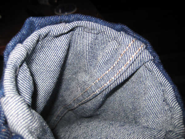 it. IDon ' t tiene que ser un experto alcantarillado pero es importante coser los bordes para asegurarse de que los pantalones vaqueros no resbalón y diapositiva o te timen demasiado fácilmente por tus criaturas! Utilicé un hilo super resistente y una aguja bastante grande. ¿No estoy seguro qué tamaño de aguja utilizar? Pide a alguien en su tienda de artesanía local qué aguja de tamaño sería mejor mano costura a través de 3 capas de dril de algodón - y un hilo adecuado para mantenerlo.