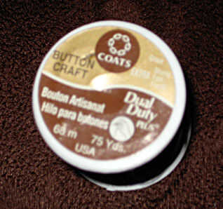 Utilicé un Coats & Clark Dual Duty Plus hilo. Se hace para los artes de botón y está marcado como una fuerza "extra fuerte".