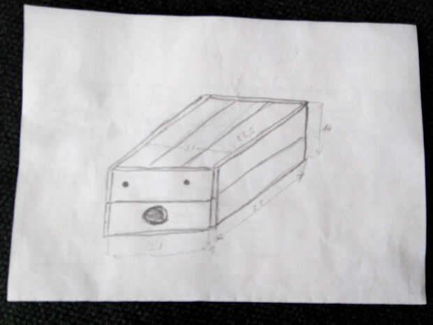 Diseño, tratando de hacerlo más sencillo posible. La madera utilizada es de tablones de pino grueso de 1.2 cm ancho, 7 cm.