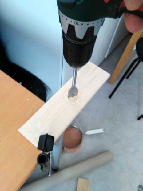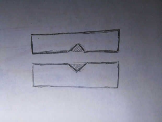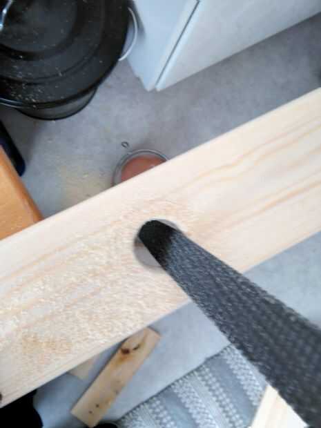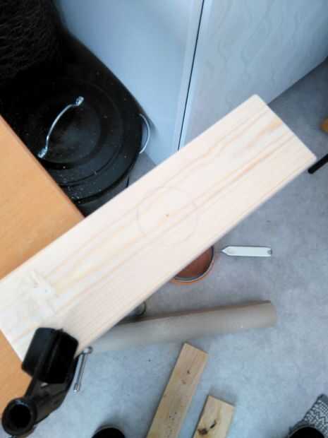 En caso de que no tienes un taladro eléctrico, puedes cortar una forma de V en la madera de la tabla superior e inferior y arena en un círculo.