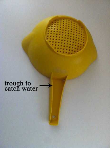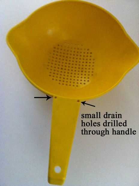 A continuación, me puse a buscar los artículos en nuestros gabinetes de cocina que eran los colectores de agua más comunes. Casi todos estos instrumentos plástico pero uno o dos metales. Usando una 1/16 broca o agujeros hechos ligeramente más grandes que no hicieron nada para dañar la integridad estructural de estos dispositivos y era apenas perceptible. Hoy en día, cuando mi esposa compra algún nuevo gadget de cocina que parece que va recoger el agua, ella me pregunta si taladrará un agujero (o dos) en él.
